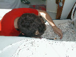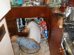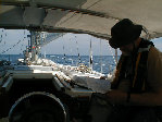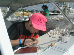 Dad working hard to keep the boat