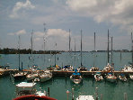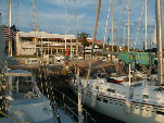 in the marina behind the boats.